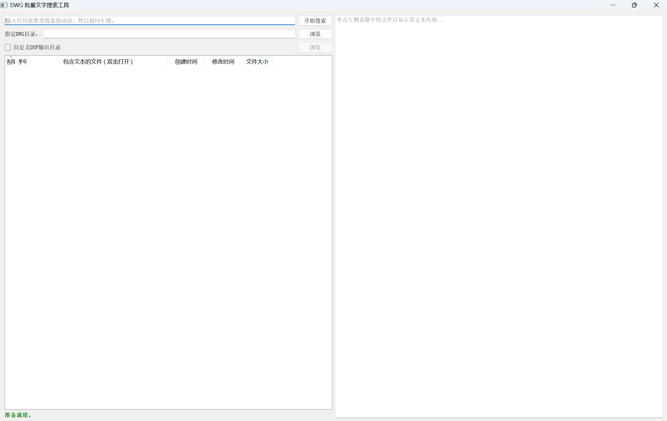 启动软件:双击运行「DWG文件批量文字搜索工具」。