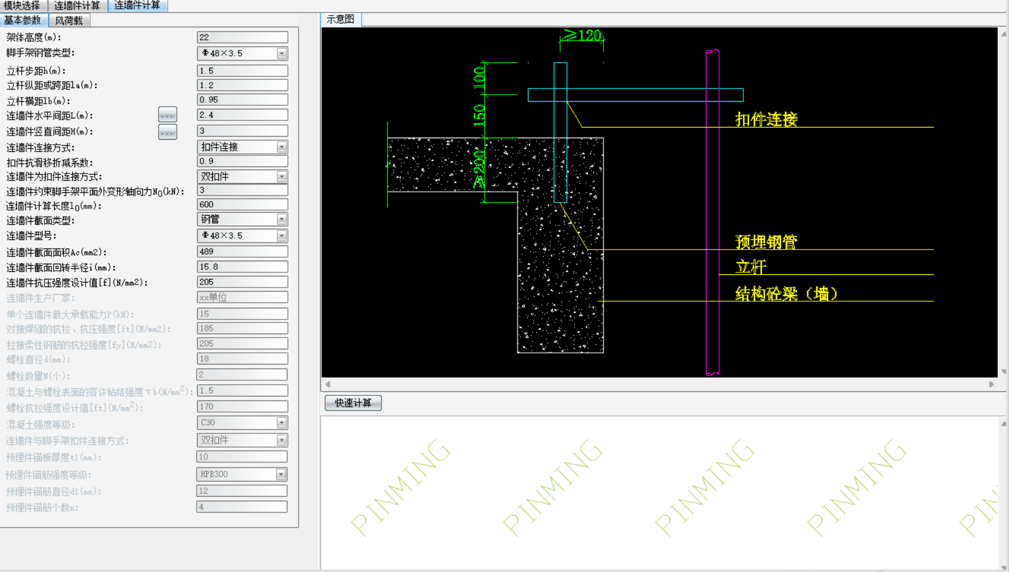 计算书中包括计算依据、计算过程、计算简图及计算结果,计算书可以直接导出word格式显示,也可以保存成word文件。您可以直接将计算书插入到word标书中。同时,界面提供快速计算功能,可快速查看该计算项是否合格。